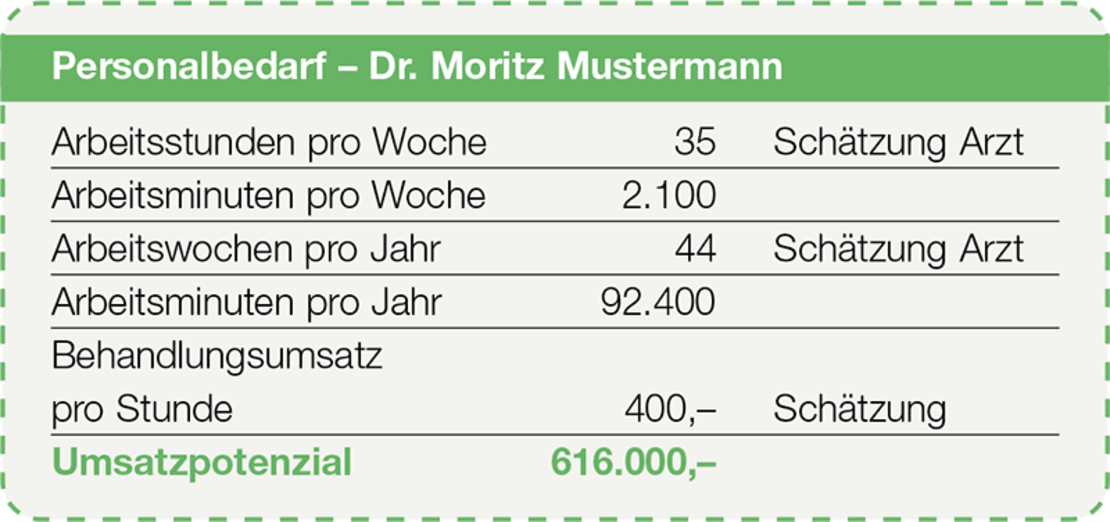 Das vorliegende Beispiel eines Zahnarztes, der seine Ordinationsgründung plant, veranschaulicht, wie hilfreich vergleichbares Zahlenmaterial bei der Erstellung eines Businessplans ist. Zunächst werden sowohl der Personalbedarf als auch die voraussichtlichen Einnahmen pro Jahr prognostiziert.