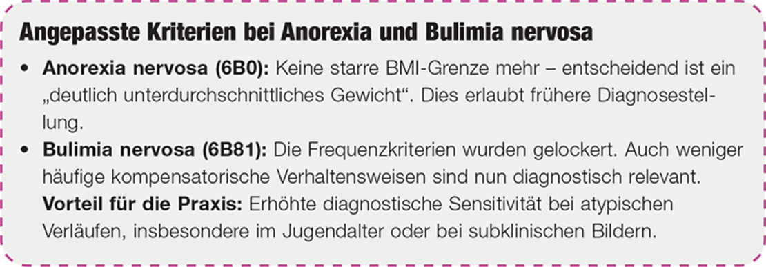 Im ICD-10 war die Binge-Eating-Störung (BED) unter den „nicht näher bezeichneten Essstörungen“ aufgeführt. Das ICD-11 erkennt sie nun als eigenständige Diagnose an – ein längst überfälliger Schritt. BED ist eine häufige Störung mit erheblichem Leidensdruck, die jetzt gezielter psychotherapeutisch behandelt werden kann.
