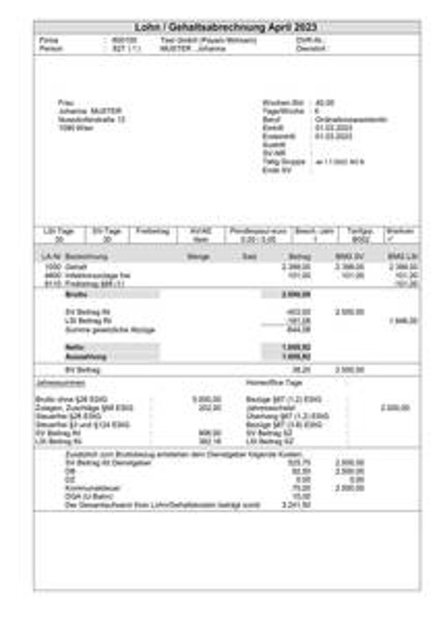 - Auszahlungsbetrag: Betrag, der an den Dienstnehmer überwiesen wird.