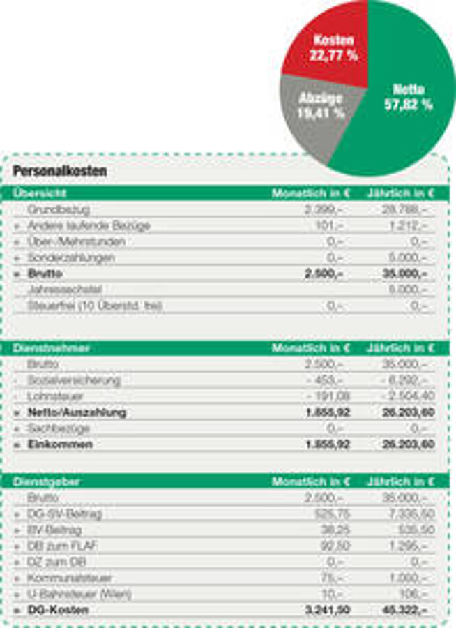Der Ordinationserfolg steht und fällt mit den Mitarbeitern. Natürlich sind Fachkenntnisse, Geschick und Engagement des Arztes das Um und Auf. Aber nur mit motivierten und tüchtigen Mitarbeitern lässt sich eine Praxis erfolgreich führen und weiterentwickeln – und die kosten Geld. Dabei setzen sich die Gesamtkosten pro Mitarbeiter aus unterschiedlichen Gehalts- und Lohnkomponenten sowie gesetzlichen und freiwilligen Aufwendungen zusammen.