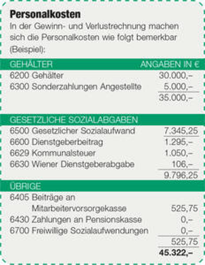 Personalkosten sind in den meisten Ordinationen der größte Kostenfaktor mit einem Anteil von 15 % bis 19 % an den Ordinationseinnahmen. Sie sind abhängig von der Anzahl der Mitarbeiter, der Höhe der Bruttogehälter und der jeweiligen Fachrichtung.